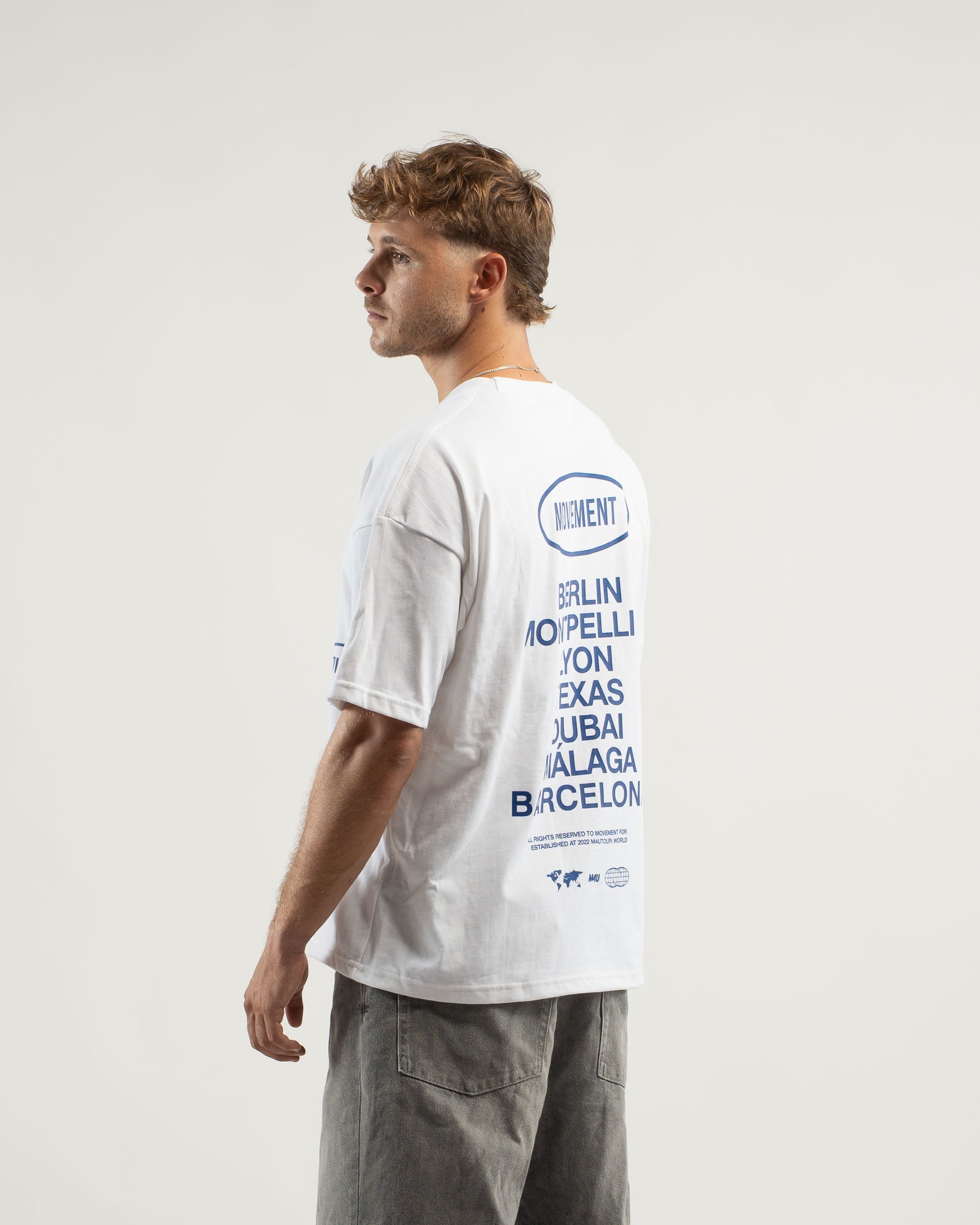 Camiseta cropped oversize, heavy weight (300gr) en algodón orgánico premium, con gráfico exclusivo Worldwide Tour.